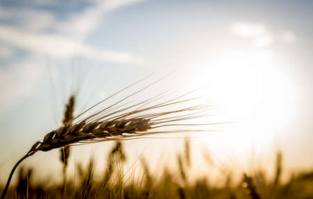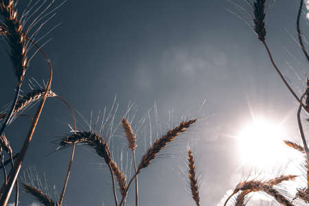 Ears of wheat, and the sky in the background. Price, shortage and cultivation of wheat