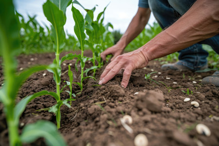 Cultivating the Earth A Close Up View of Planting and Nurturing New Growth in a Lush Natural Environment