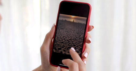 Capturing the Magic Hour Phone Photography of a Vibrant Ocean Sunset with Gentle Waves