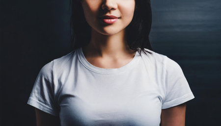 A captivating portrait of a confident young woman showcasing artistic apparel. The unique design and striking lighting create a powerful visual impact, embodying style and individuality.