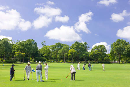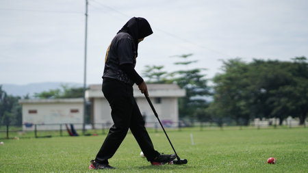 Playing Gateball in an open space at the Sultan Agung stadium. . : BANTUL, Indonesia - 28 February 2021.