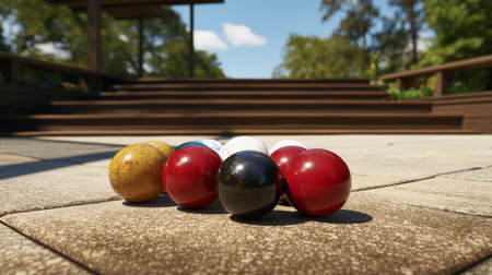 A bocce ball making the critical hit, with the other balls and the pallino in a strategic blur in the background, capturing the tension and finesse of bocce .