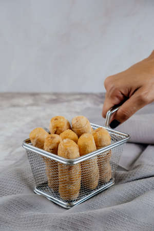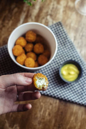 Delicious homemade bitterballen made from flour, cheese, milk coated with bread crumb filled with mozzarella.