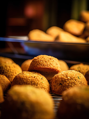 Freshly cooked meatball appetizer with homemade falafel and spicy sauce generated by artificial intelligence