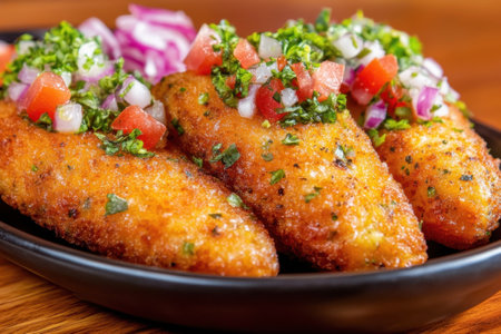 AI Generated. Crispy Fried Bites Toss Salad Leafy Greens Spices