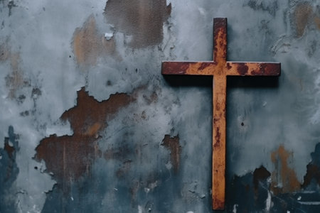 AI Generated. Weathered Metal Cross with Rustic Industrial Design Concept