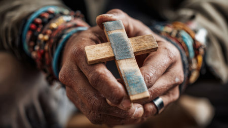 still life of crucifix held in hand Eid al Adha the Feast of Sacrifice Generative AI