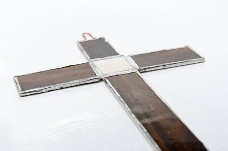 funeral, liturgy, religious ceremony concept. Ashes cross on white background