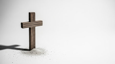 Dark charcoal cross and ash. Symbolic, dramatic, solemn.