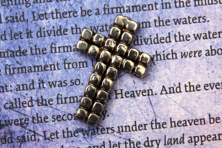 Christian cross necklace on Holy Bible book, Jesus religion concept as good friday or easter festival