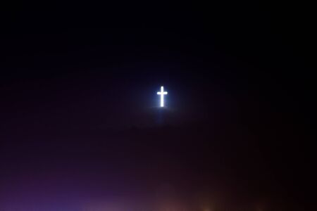 Christian cross lighting in the dark.