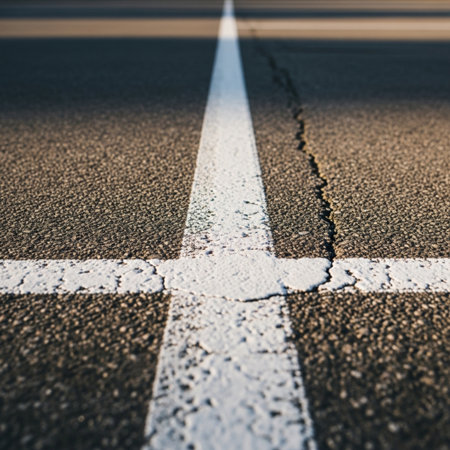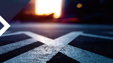 Captivating urban scene showcasing textured pavement with traffic markings against a vibrant sunset, creating a dramatic yet serene city atmosphere perfect for various projects.