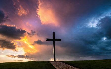 Evening Cross Profile, Symbolizing Easter Hope, Tranquil Scenery.