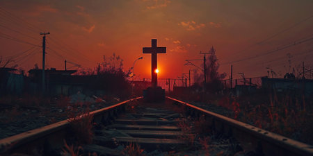 Heaven Road Concept: railway a way walking towards a cross