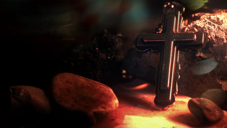 Cross of Jesus on the top of a hill. 3d rendering