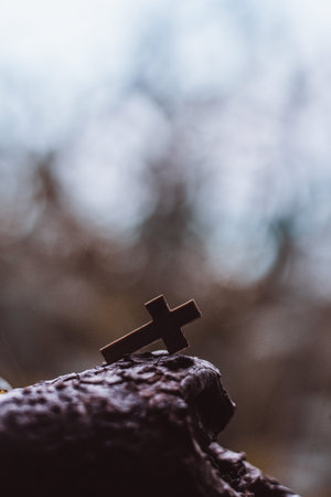 Wood Christ cross for Christian belief. Jesus to death by hang on Christ cross. Life and hope for Christ.