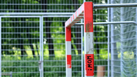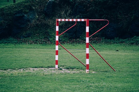 A white and red goal on the school playground