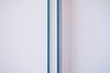 Part of double straight conduit electrical pipes on white background with shadow