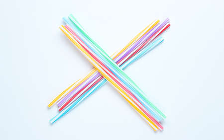Lot of multi-colored cocktail tubes on white background. Top view