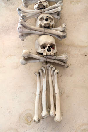 Ancient human skull and bone decoration in Sedlec, Czech republic. Kutna Hora.
