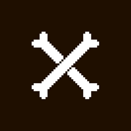 monochrome simple flat pixel art illustration of white two crossbones on black background