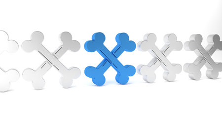 Blue Crossed bones icon isolated on white background. Pets food symbol. Happy Halloween party. Minimalism concept. 3D render illustration.