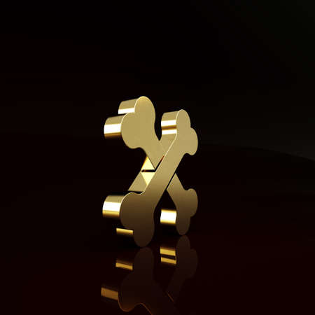 Gold Crossed human bones icon isolated on brown background. Minimalism concept. 3d illustration 3D render
