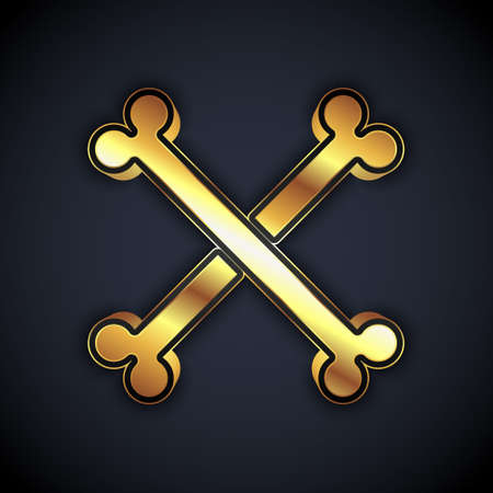 Gold Crossed human bones icon isolated on black background. Vector