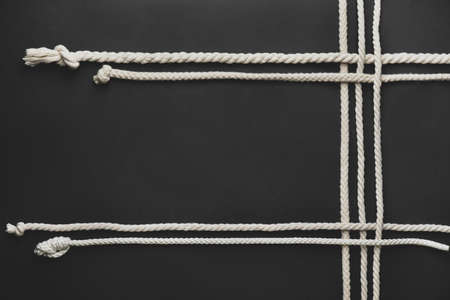 Close-up shot of vibrant ropes knotted together creating a colorful grid pattern, showcasing texture.