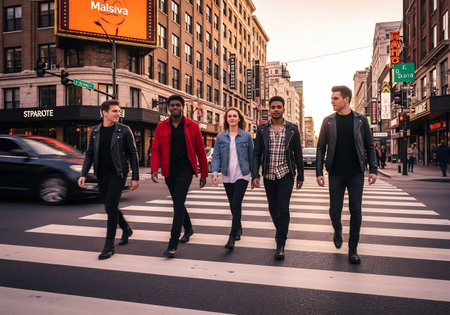 Group of friends walking on the street in New York City, United States