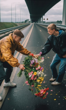 Generative AI : man prepared a surprise gift of flowers for his girlfriend