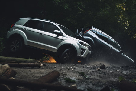 Dangerous car crash. suv collides with another vehicle resulting in road accident