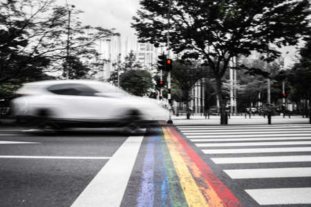 Zebra crossing in the city, black and white photo. High quality photo