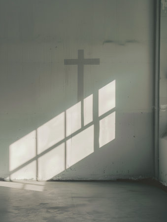 Cross shadow on the wall with sunlight in the room, Christian concept.