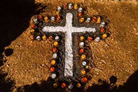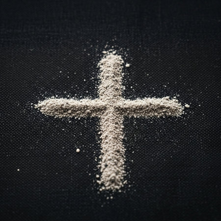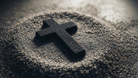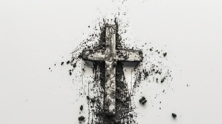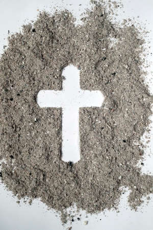 Cross made of ashes. Ash Wednesday. Slow season. France.