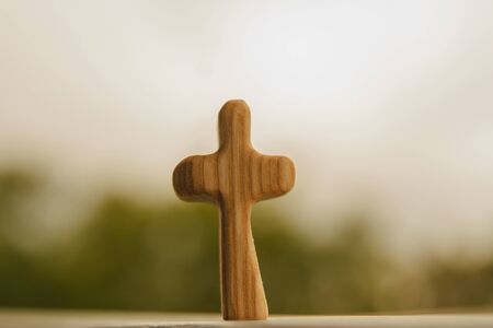 wooden cross on the wooden table background