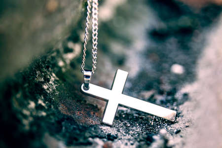 Metal cross on grunge background