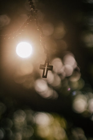 christian cross with bokeh light background