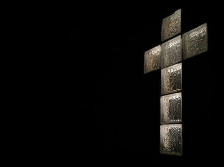 Black wall with Christian cross shape with sunlight background