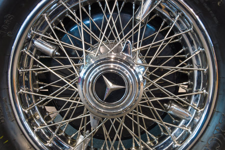 STUTTGART, GERMANY - MARCH 17, 2016: Wheel and brake system of full-size luxury car Mercedes-Benz 770K Cabriolet D (W07), 1931. Europe's greatest classic car exhibition RETRO CLASSICS