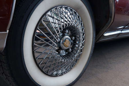 Wroclaw, Poland, 23 August 2021: view of the wheel of an old Cadillac car