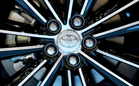 Izmir, Turkey , January 14th. , 2020: Near shot of Toyota brand alloy wheel in an auto shop. Many car manufacturers try to produce unique allow wheels to attract their customers and make their car look different.