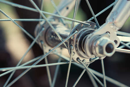 Close-up of a spoke wheel. Macro photo. Part of the bike.