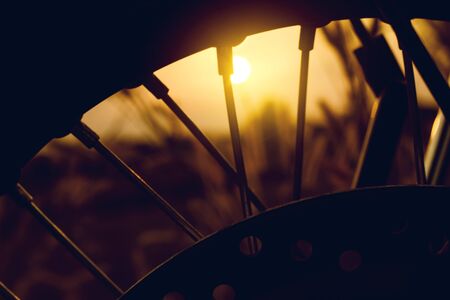 Cose-up silhouette of motorbike on sunset background,Enjoying freedom and active lifestyle.