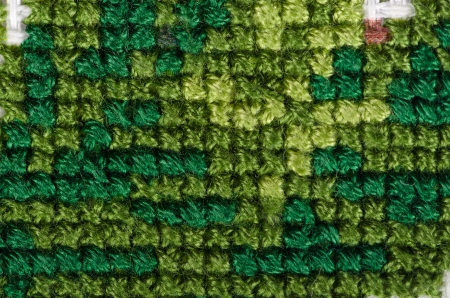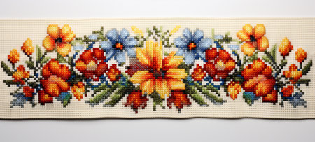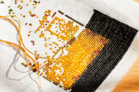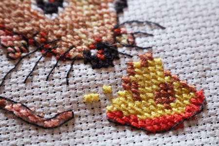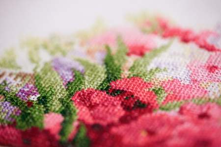 A close up of a cross stitch embroidery. Cross-stitch ornament.
