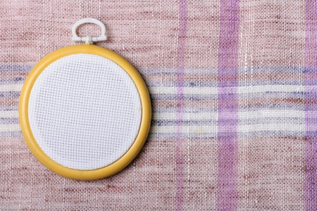 Embroidery frames, embroidery stitching kit with color threads and canvas background with copy space
