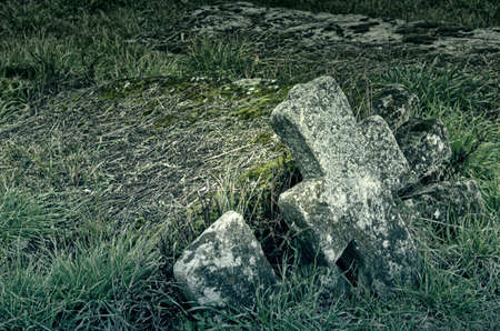 European antique crosses made of granite stone, in established burial sites