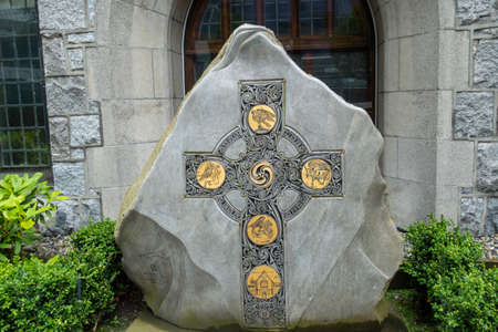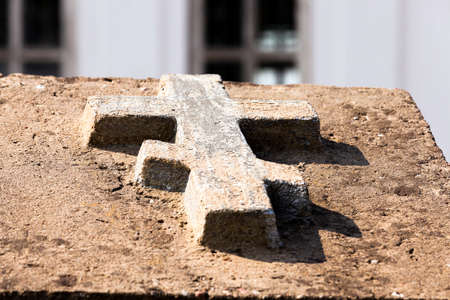 Christian cross on the outdoor stone.