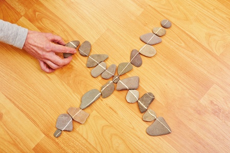 Hand putting a stone to many stones that are showing a cross
