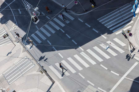 People walking on zebra crossing. View from above.